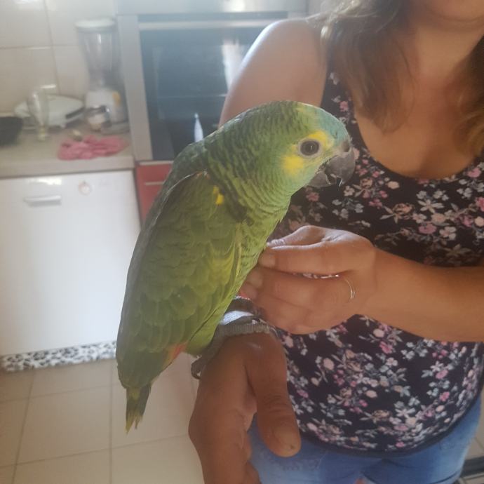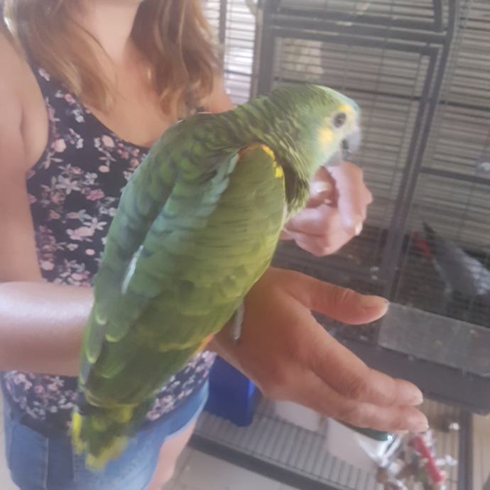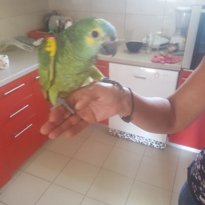 Bebe plavocelih amazona rucno hranjene samostalne stare 3 mjeseca vrlo umiljate i pitome naucene na zivot i van kaveza te naucene i na malu djecu i kucne ljubimce prstenovane i prijavljene prodajem cijena 800 e tel 091/519 4793