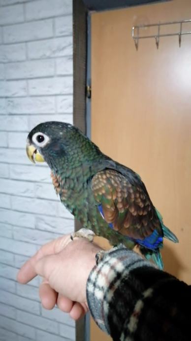 Brončanokrila papiga pitoma ručno hranjena muški prošlogodišnji idealan za kučnog ljubimca lako nauči govorit i nije glasan cijena 350e. Poziv na br. 0997577039