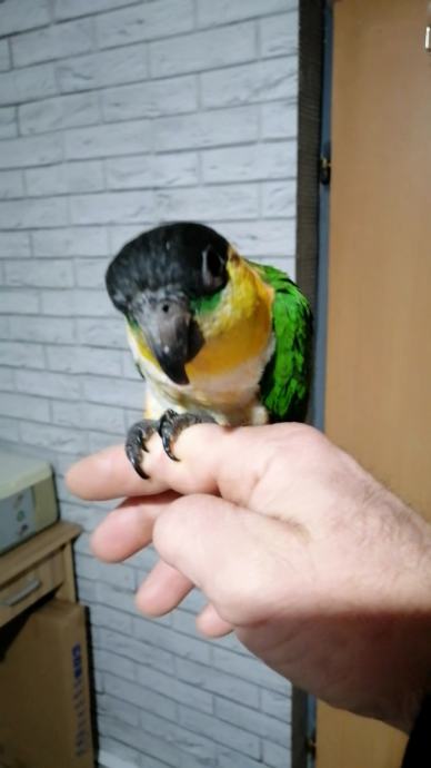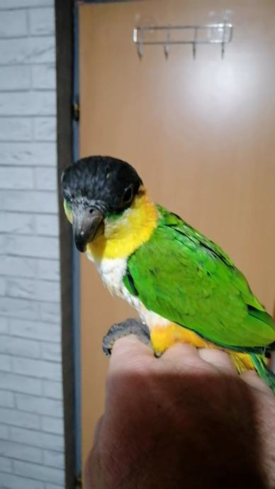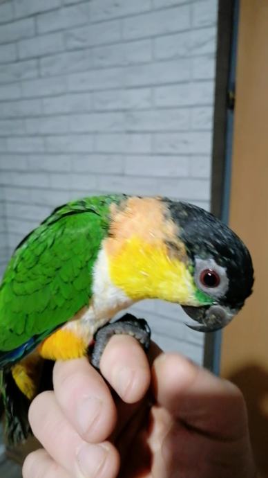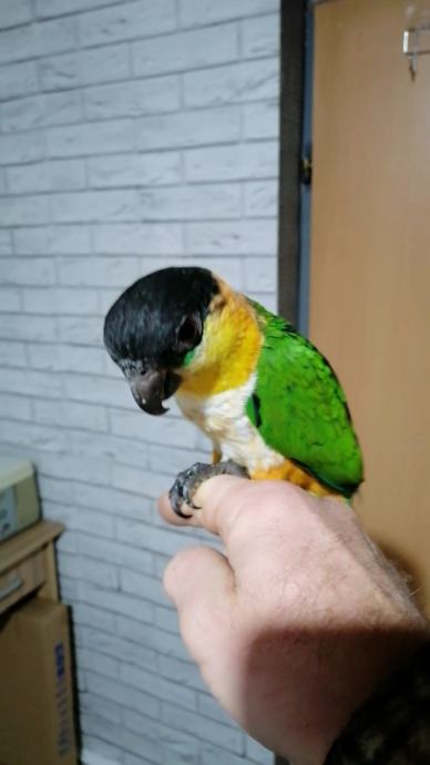 Ženku crnokapi pionites (medvjrdič) ručno hranjena pitoma 400e info 0997577039