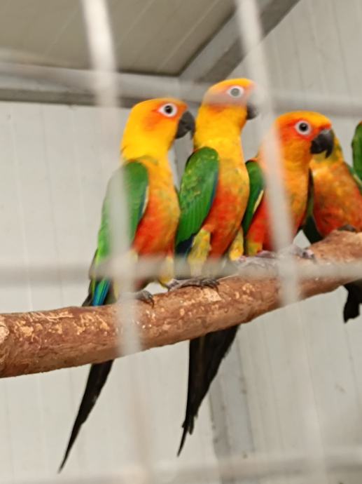 Višak mlade papige jandaje,ima 3 muška od prošle godine, 6 mladih od ove te 4 mlada starih 3 mjeseca. Sve su odhranjene od roditelja.Cijena po ptici je 60 eura. Na mob 099/3002255