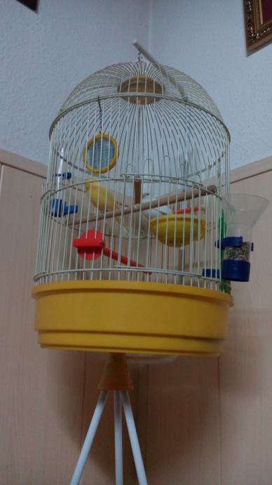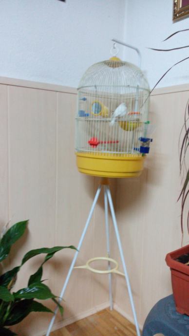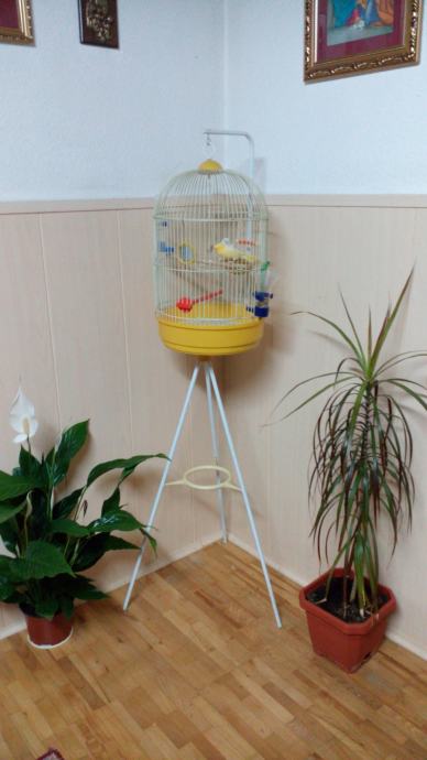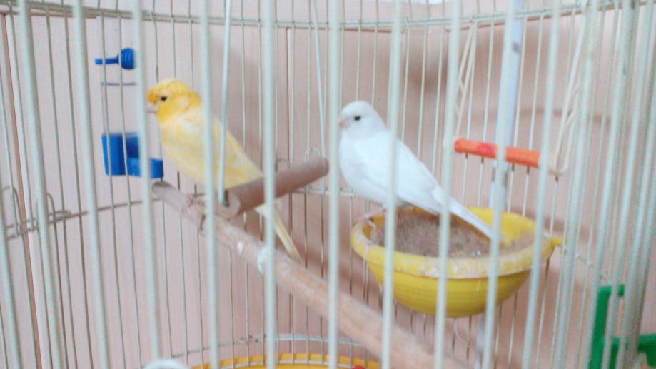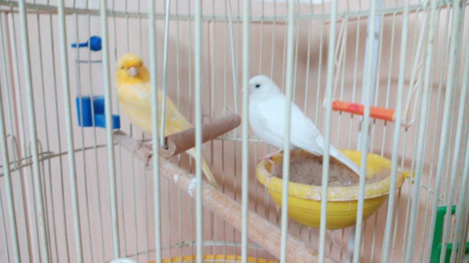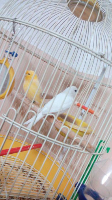Prodajem par kanarinaca starih godinu dana s krletkom na stalku. Krletku (gajbu) je moguce lako ocistiti jer ima ladice za ciscenje, a uz nju idu hranilica, pojilica, gnijezdo, ljuljacka, dvije precke, ogledalo, ljestvice I hrana. Visina nogu stalka je 90cm, a krletka je visoka 60cm I promjera 30cm. Mogucnost kupnje sve zajedno ili posebno kanarinci posebno krletka. Cijena se odnosi na oboje zajedno.