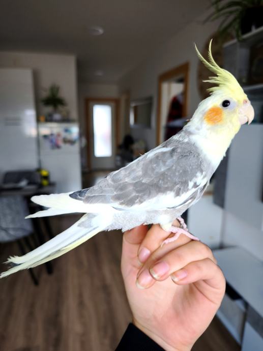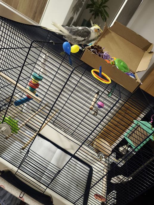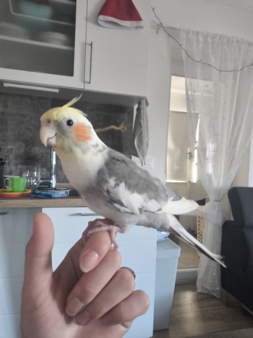 Prodajem nimfu staru 6mjeseci zajedno s krletkom i hranom i svim pripadajućim igračkama. Naučena je na ruke, ne grize i zna reći "daj pusu".