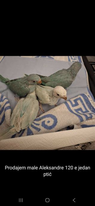 Prodajem male aleksandre 1oo e cijena jednog ptića imam i bijelog u ponudi.+385925047139 broj zovite slobodno .