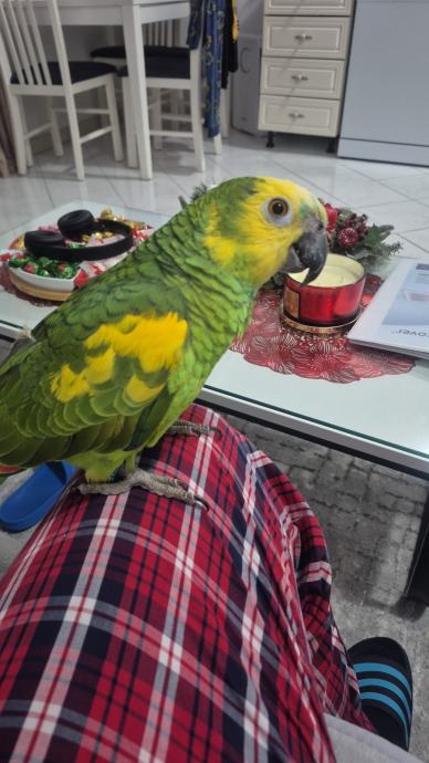 Muzjak, 2.5 godine, ručno hranjen, pitom, priča, prsten papiri.