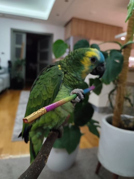 Prodajem plavočelu Amazonu ženku staru 1,5 godinu. Vrlo pitomu i pametnu, počela je pričati, izvrsno uči.