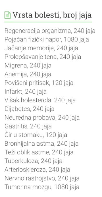 • pojačan fizički napor (sportaši i fizički radnici) – 1 080 jaja