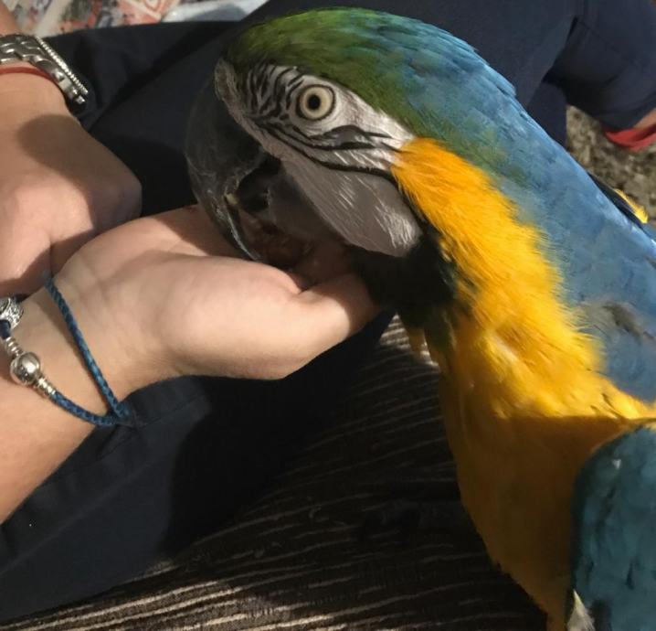 Prodaje se modro zuta Ara 7 godina stara. Prstenovana sa svim papirima, pitoma, prica.