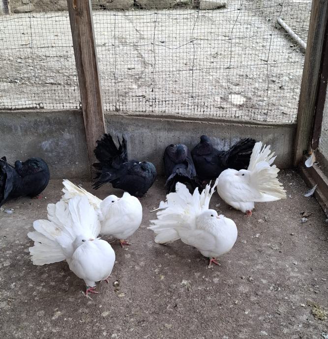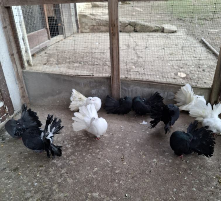 Paunaši na prodaju.6 pari 2 para crna,2para bijela,par kovanih par šarenih.8 ženki 4 bijele,dvije šarene crna i kovana.Golubovi sa fotografija