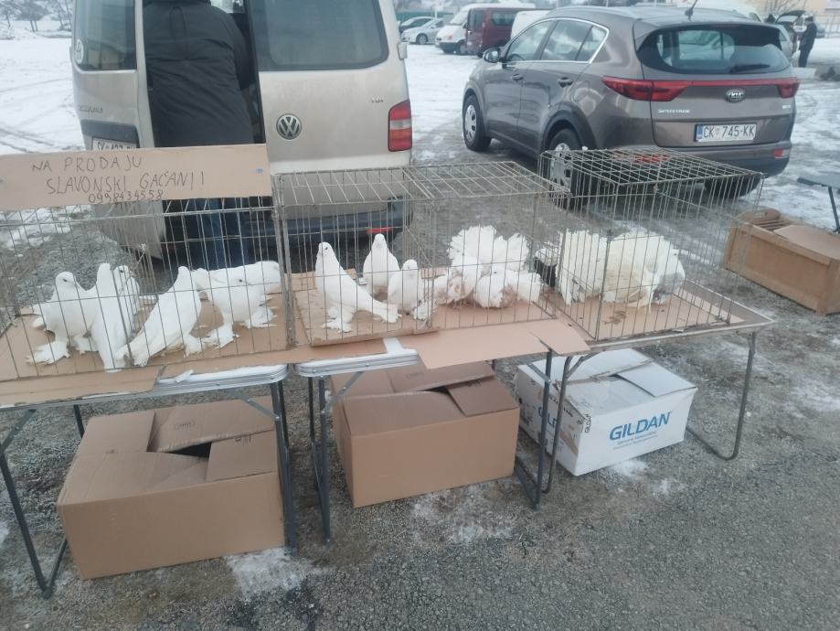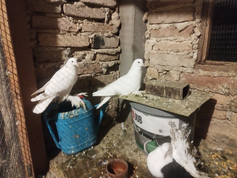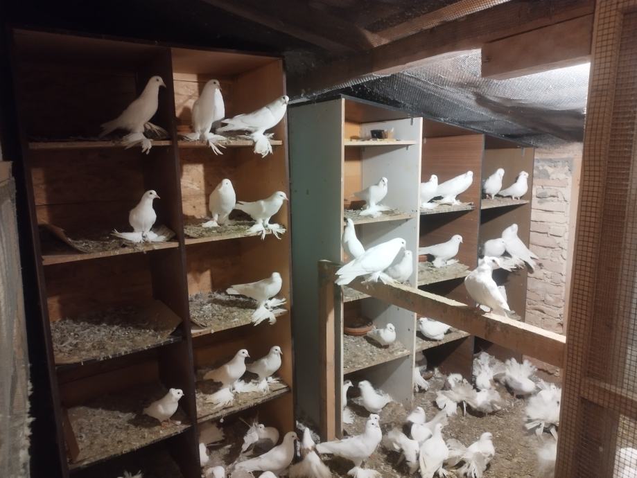 Prodajem slavonske gaćane u bijeloj boji,sisačke prevrtače u bijeloj boji i paunaše u štitastim bojama( nešto crvenih i srebrnih) Preuzimanje na adresi ili po dogovoru. Cijena 15 eura/kom.