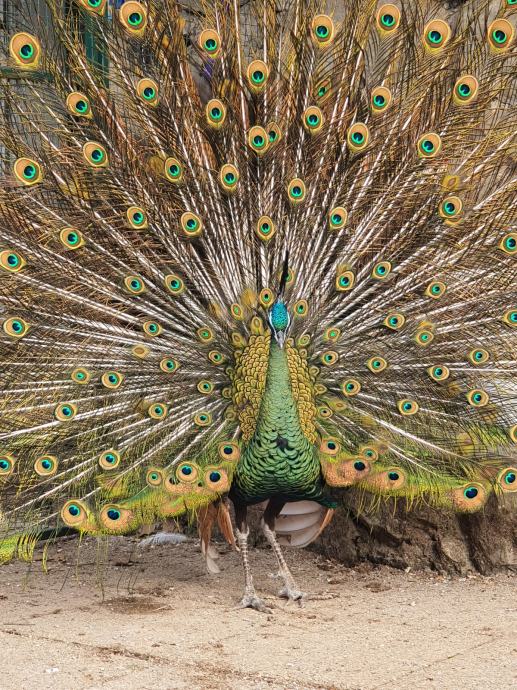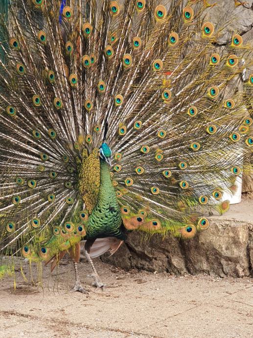 Zeleni Paun "Muticus" zajedno sa ženkom u paru. Paun ulazi u četvrtu godinu, spolno zrel.