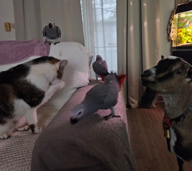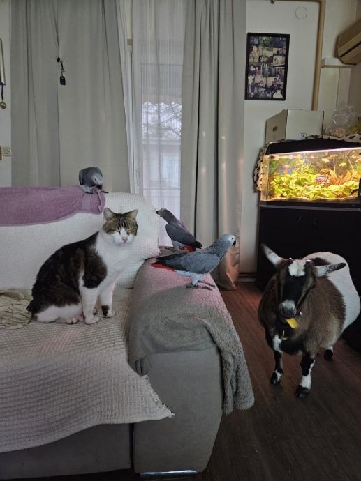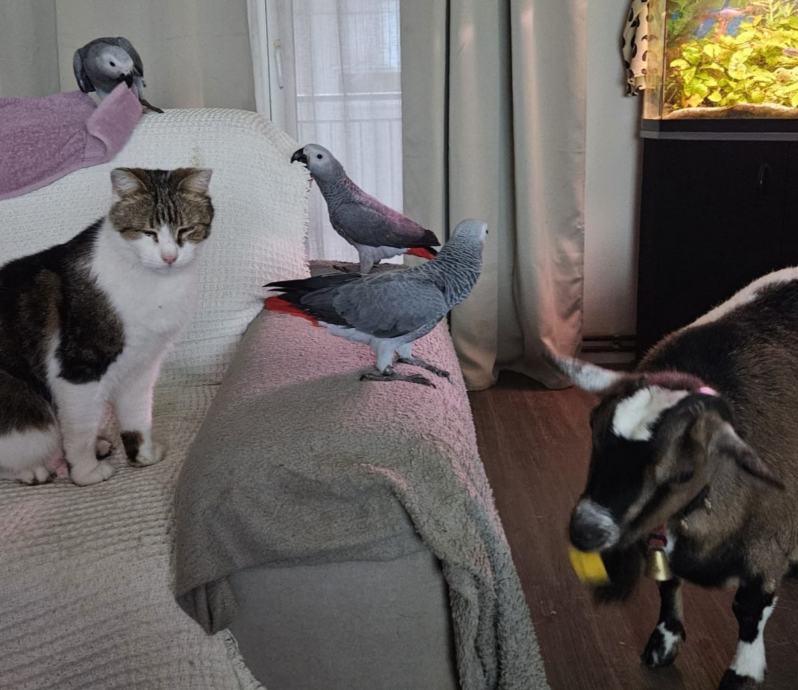 Izuzetno privržen, naučen na sve vrste kućnih ljubimaca (pas, mačka, kunić, ptice...)