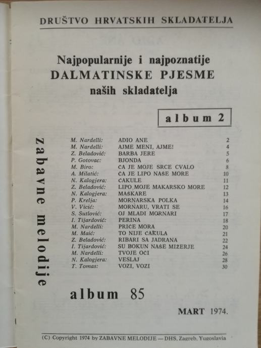 Društvo hrvatskih skladatelja, Zagreb,1974.