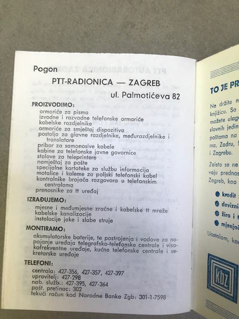 Izdavač : Poduzeće PTT saobraćaja, Zagreb
