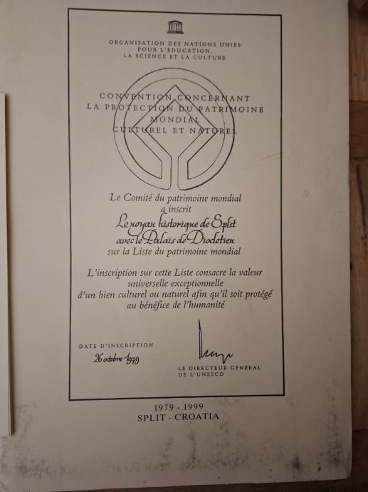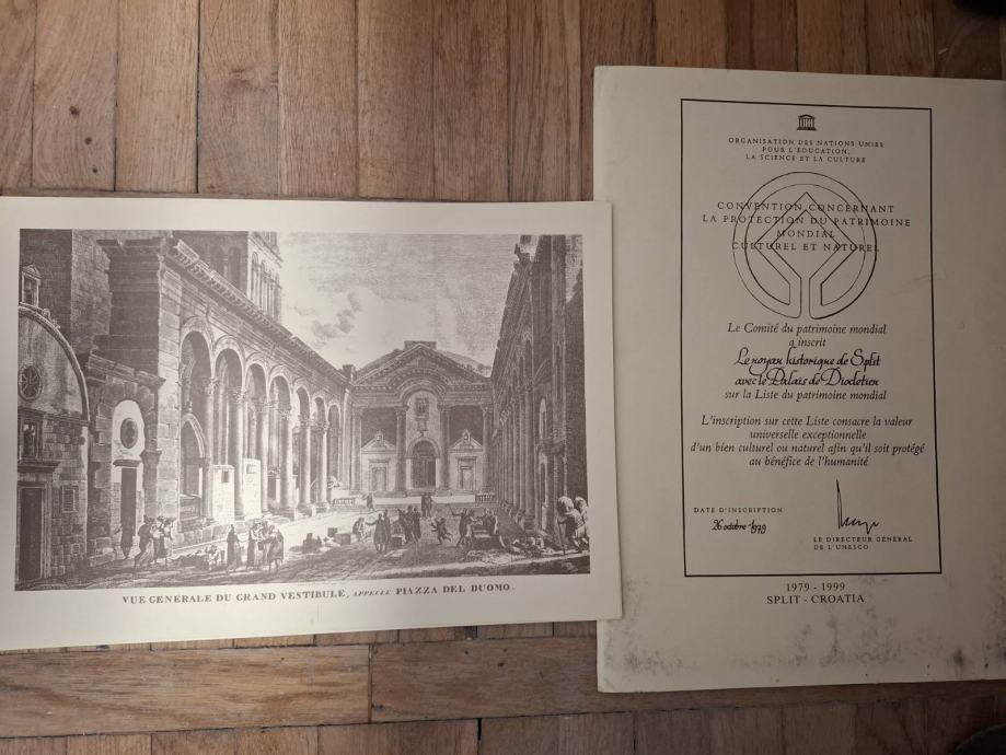 10 listova a4 formata sa grafikama u mapi izdanoj prigodom obilježavanja 20 obljetnice uvrštenja palače na UNESCO listu svjetske baštine.