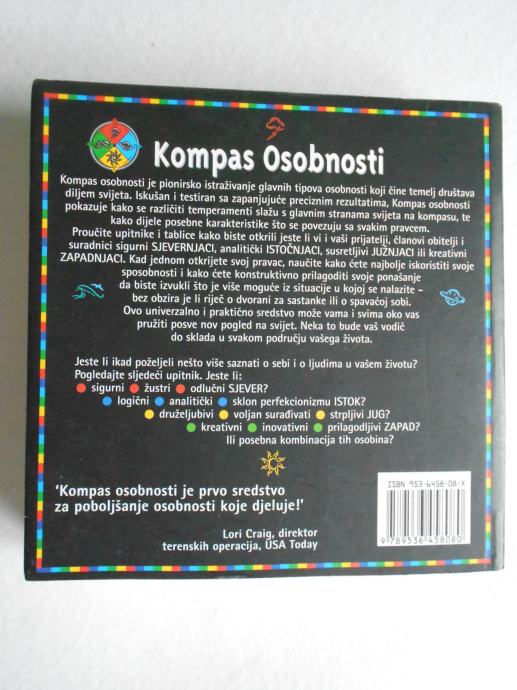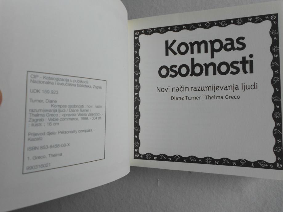 Prodajem priručnik za razumijevanje ljudi "Kompas osobnosti" Diane Turner i Thelme Greco u izdanju "Veble commerce" 1999. g. u kome autorice prezentiraju teoriju o karakterima. Meki uvez, nova knjiga.
