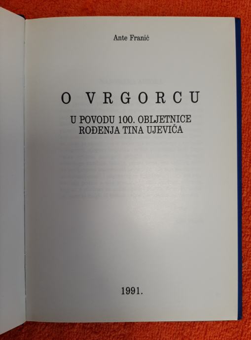 U povodu 100. Obljetnice rođenja Tina Ujevića. Skupština općine Vrgorac, 1991.