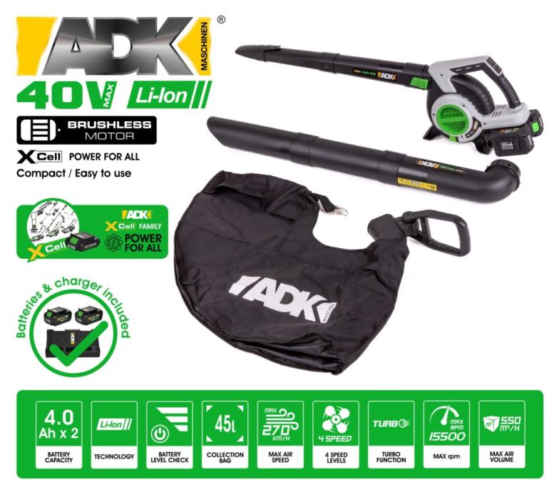 Adk akumulatorski puhač lišća + usisavač 40v sf8a512 2 x 4.0 ah