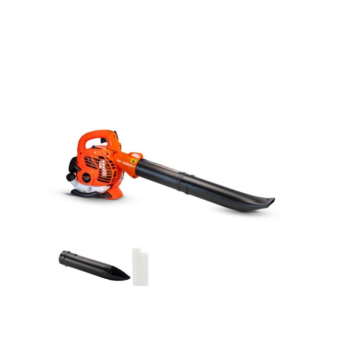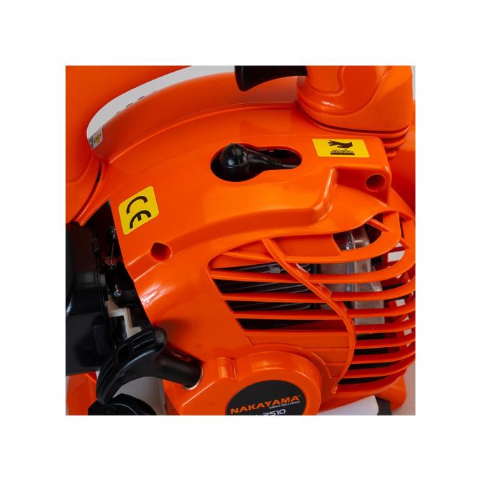 Benzinski puhač lišća Nakayama BL2510 PRO, idealan je uređaj za čišćenje vanjskih prostora kao što su vrtovi, ceste, parkovi i terase od otpadnog lišća, biljnih ostataka ili otkosa s travnjaka i drugih vrsta onečišćenja koji se mogu ukloniti primjenom zraka zahvaljujući jednostavnom pristupu teških područja i kutova. Uređaj je pokretan snažnim 2-taktnim motorom obujma 25,4 cc, koji proizvodi snagu od 0,75 kW. Konstruiran je zračnim hlađenjem, spremnikom goriva zapremine 450 ml i maksimalnom brzinom okretaja 8500 u minuti. Zahvaljujući promišljenom dizajnu, rukovanje alatom je udobno i jednostavno.