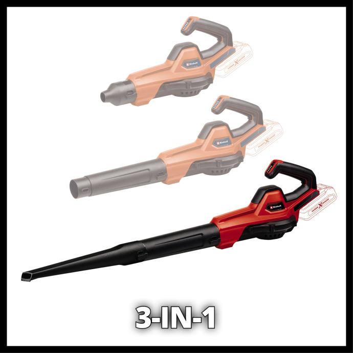Uz Einhell akumulatorski univerzalni puhač GE-UB 18/250 Li E-Solo lako je održavati red u kući i vrtu u svakom kutu, zahvaljujući bežičnoj slobodi. Bežični puhač je član Power X-Change obitelji; Za rad je potrebna baterija 1x18 V. Baterije iz obitelji sustava mogu se koristiti u više od 200 Einhell uređaja, bilo u vrtu ili radionici. Višedijelna cijev za puhanje može se koristiti za razne primjene u kući i vrtu, na primjer kao puhač za lišće s dugom cijevi za puhanje, kao radionički puhač sa srednjom cijevi za puhanje ili kao pomoć pri paljenju roštilja s kratkom preciznom cijevi. Elektronička kontrola brzine osigurava da se izvrši potrebno podešavanje. LED zaslon pruža informacije o postavljenoj brzini na prvi pogled. Mekani rukohvat osigurava dobro držanje i rad bez zamora. Integrirani zidni nosač omogućuje jednostavno skladištenje. Za optimalne rezultate preporučuje se baterija od 2,5 Ah ili veća. Isporuka ne uključuje bateriju ili punjač, ali oni su dostupni zasebno, na primjer kao praktičan starter set iz Einhella.