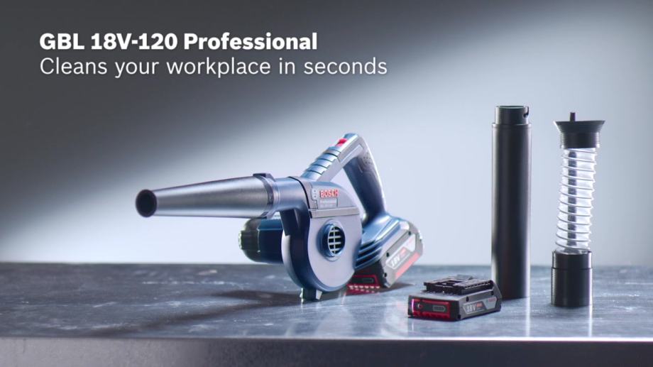 GBL 18V-120 Professional akumulatorsko puhalo savršeno je za profesionalne radnike koji se bave čišćenjem radnih prostora, gradilišta, otvora bušilica ili drugih industrijskih površina.