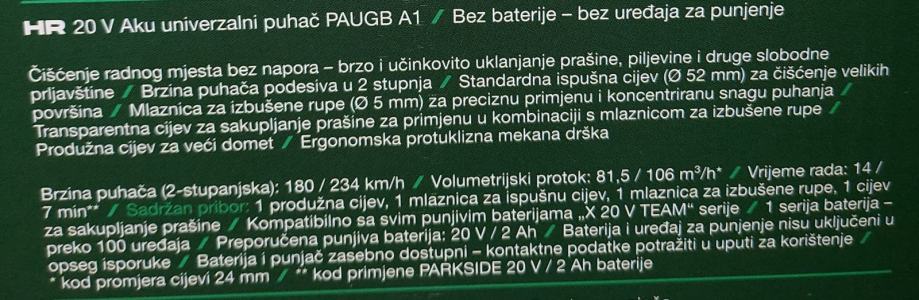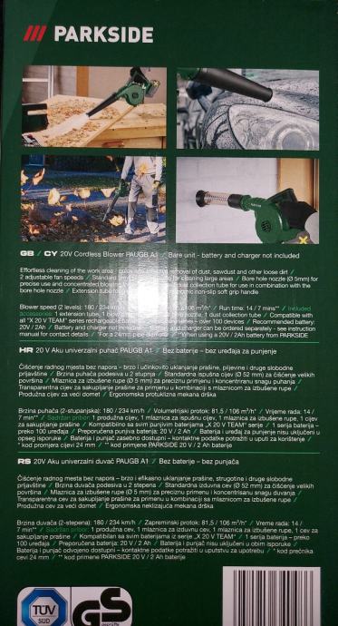 Parkside puhač lišća PAUGB 20-Li A1NOVO