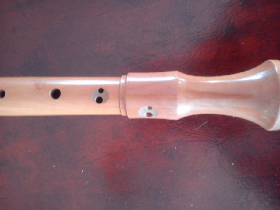 Blok flauta firme " Roessler " osnovana 1947 g. Tenor . Cijenjena . Moguca zamjena za austrougarske kovanice hellere i fillere .