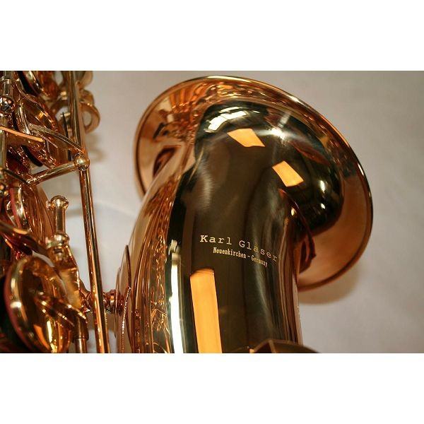 Karl glaser, Germany lacquered brass with solid flaps and mechanisms. Well made, padded leather, stainless steel springs and upmarket features make this saxophone stand. A refined and classy equipped instrument with a really nice, Sonorem sound. Comfortable and lightweight response, and the robust mechanism are the guarantee for a fast successful experience. Let yourself be enchanted by the quality and the full sound of the KARL glass saxophones deliver. With Karl glass you will not be disappointed. These instruments we are selling for many years. The real value for money is first class. Countless musicians, students and teachers playing these instruments. ; Tuning: Bb , body: Brass, lacquered keys: Brass with Leather pads with high F # key ; Thumb Rest ; Includes: mouthpiece and papers With Included: Soft case, Rod, strap