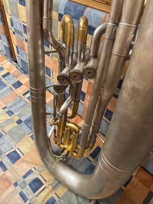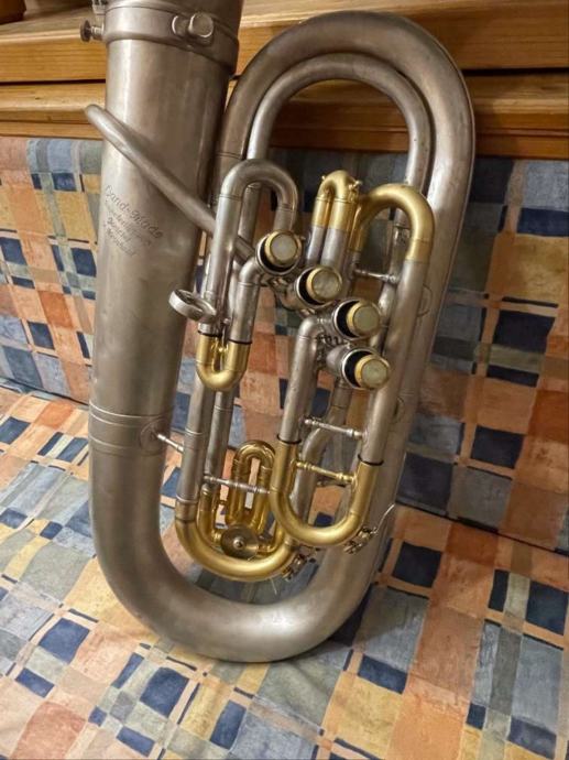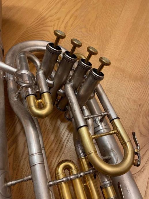 Bariton je u potpunosti obnovljen 2023. godine, mat završna obrada nikl-srebro, pozlaćeni lukovi, servis mehanizma 11/2023, s kovčegom i JK (Exclusive 5 GL) usnikom.