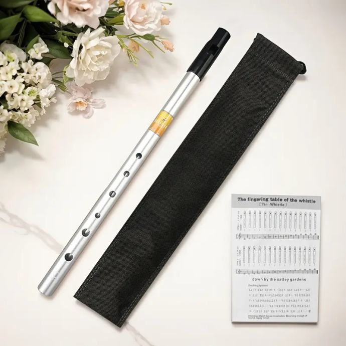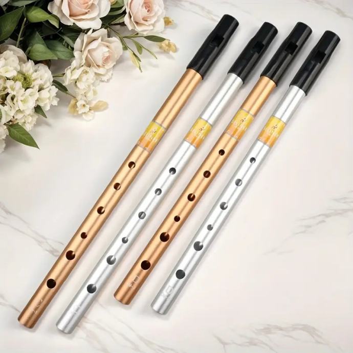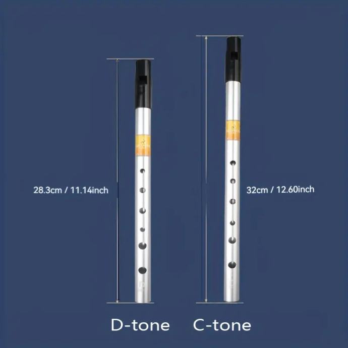 Irska flauta - flaute C i D, metalna brušena završna obrada, idealno za početnike i profesionalce, sopran set, set flauta za početnike | Tradicionalni dizajn | Izdržljiva konstrukcija, pribor za flautu.