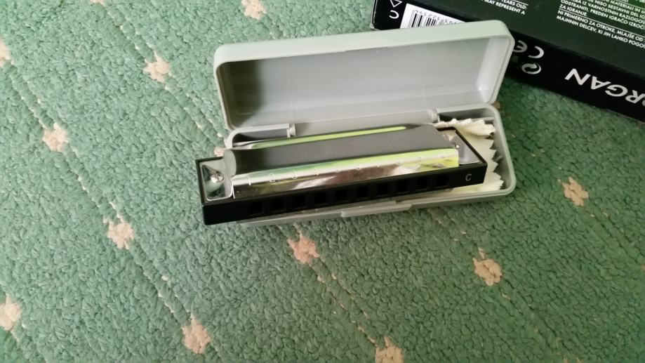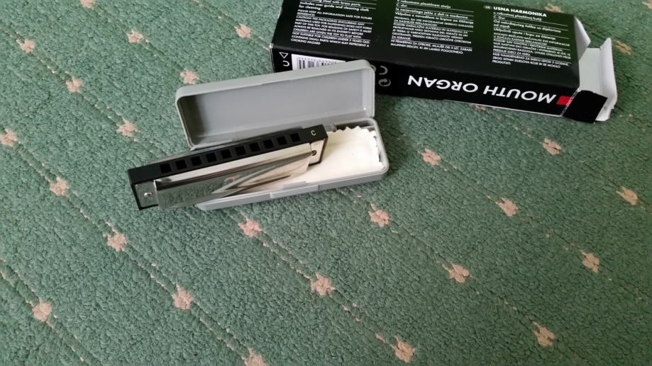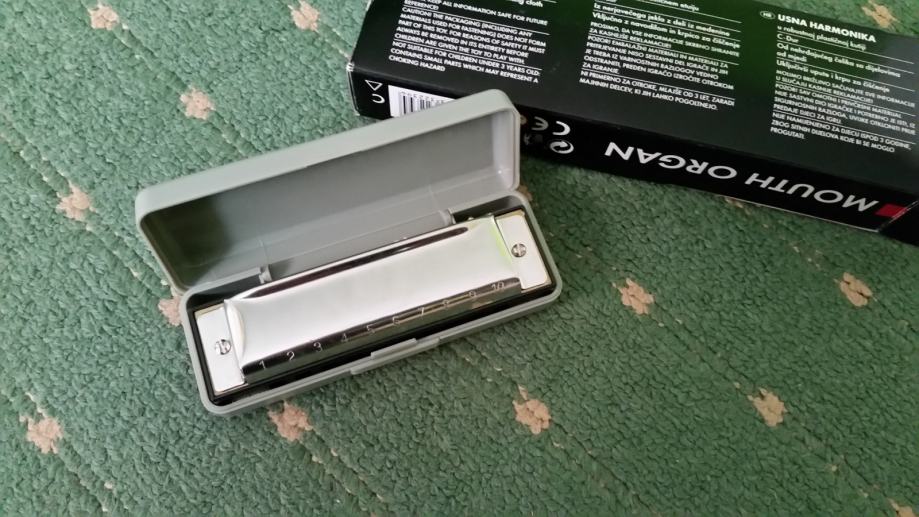 harmonika nije nikad korištena, u nju se puhnulo svega 5 puta, zvuk je solidan, nije namijenjena nekom ozbiljnom sviranju, ali za učenje i u društvu je više nego dobra