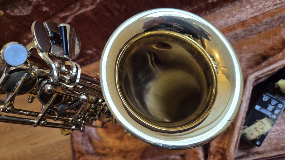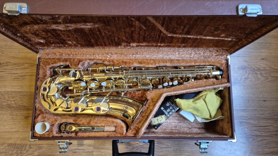 Yamaha YAS-32 (Purple Logo) alt saksofon, poznati Yamahin napredni (intermediate) model. Ovaj saksofon je iz osamdesetih (No.045xxx). Saksofon je "minty", znači skoro kao novi, malo sviran, spreman za upotrebu bez ikakvih dodatnih ulaganja. Idealan za sve uzraste saksofonista. Dolazi u originalnoj kutiji s ostalom pripadajućom opremom i usnikom. Tekući Yamahin model tog ranga je YAS-480, koji nije ni blizu po kvaliteti tona i izrade.