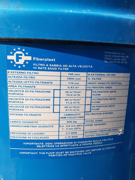 Fiberplast filter za veliki bazen od 70m3 - 100 m3.