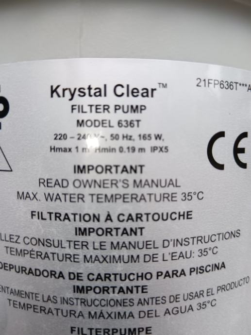 PRODAJEM INTEX KRYSTAL CLEAR FILTER PUMPU ZA BAZEN, MODEL 636T,165W