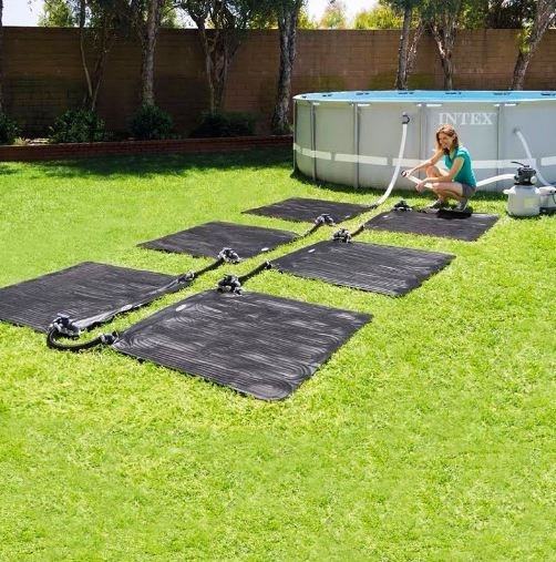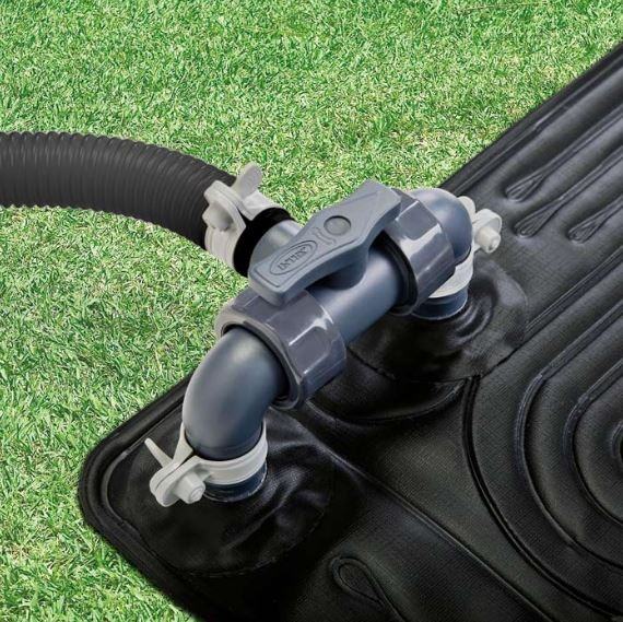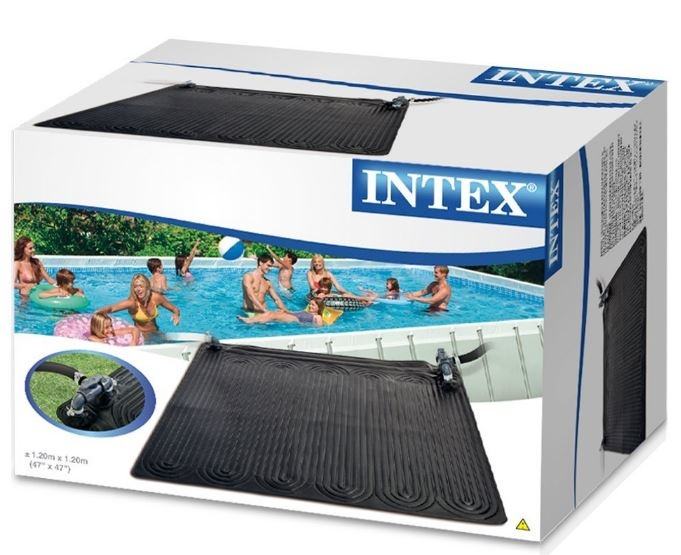 Solarni grijač Intex za vodu u bazenu priključimo na filter. Kolektor Intex zagrijava vodu uz pomoć sunčane energije. Vodu zagrijava približno 3-5 stupnjeva. Idealan je za sve bazene do 30.280 l vode.Grijač moramo postaviti na vodoravno tlo pri bazenu i crpki.Dimenzije: 1,2 x 1,2 metraPriključak 32 mmTežina: 2,9 kgCijevi nisu priložene.Idealan za filtere do 9.462 litara na čas i do 7.570 litara na čas za pješčani. Filter mora imati priključak 32mm!Po želji je moguće povezati više panela skupa.- integriran bypass ventil za optimalnu kontrolu temperature bazenske vode- proizvod je otporan na UV zrake i slanu vodu- Za uporabu sa filter crpkom najviše moći 370 WPaket sadrži:Točke za sastavljanje cijevi: Promjer 32 mm1 x Solarni kolektor1 x Priključna cijev: 0,5 m (promjer 32 mm)1 x Adapter A i B za (38 mm) produžetak cijevi1 x Odvodni ventil