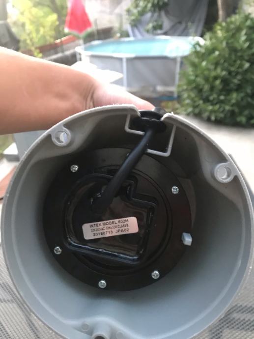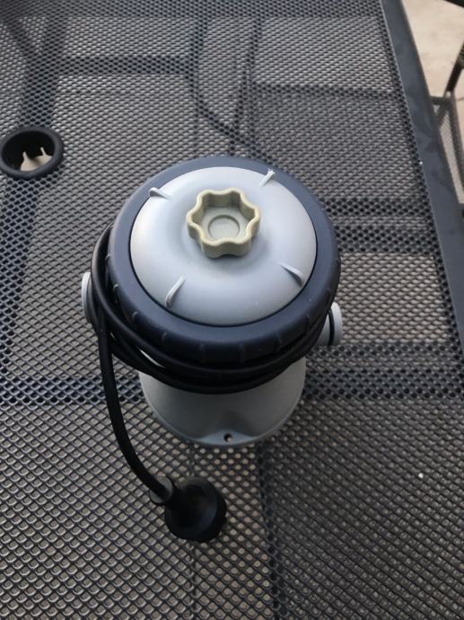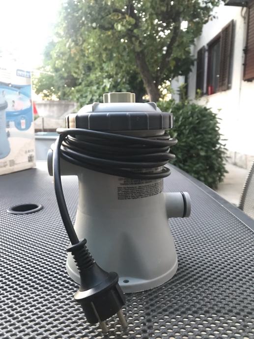 Intex Krystal Clear Filter Pumpa (model 602) namijenjena je za filtraciju nadzemnih bazena kapaciteta do 4’500 litara. Kapacitet pumpe je 1’136 L/h. Za ovu pumpu se koristi filter tip “H” koji nije isporučen u paketu. U paketu dolazi set crijeva i mlaznica (odvodna i dovodna). Filter pumpa je došla u setu s bazenom koji se vidi iza u pozadini, no druga pumpa je korištena za njega dok je ova bila spremna u slučaju kvara glavne pumpe. Cijena nije fiksna (dogovor putem telefona).