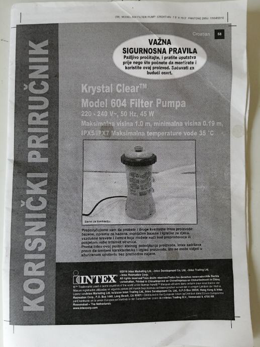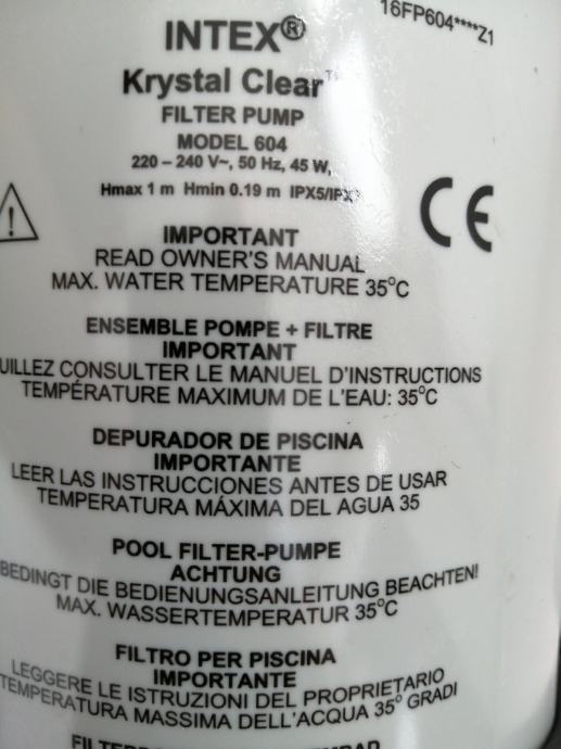 Intexova pumpa Crystal clear, model 604, za bazene, 3.66 x 0,80 cm, koristena mjesec dana, prodajem za 300 kn !! Moguca dostava !!