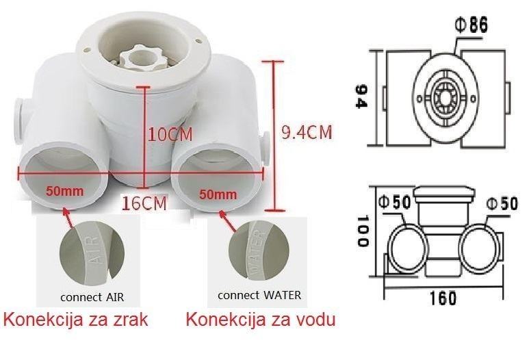 KONEKCIJE VODA I ZRAK SU ZA SVE VRSTE CIJEVI PROMJERA 50mm.