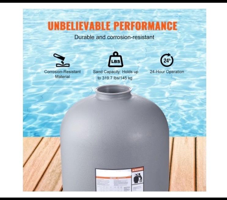 Umorni ste od rada s pijeskom u svom bazenu? U tome će vam pomoći naš pješčani filter . S maksimalnim protokom od 65 GPM, ovaj filter može poboljšati čistoću vode i osigurati optimalnu filtraciju. Zahvaljujući njegovoj sposobnosti da brzo prođe kroz cijeli bazen, možete uživati u sigurnom i osvježavajućem iskustvu plivanja bez pijeska i drugih nečistoća.