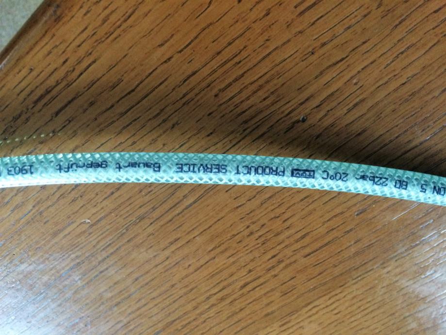2 crijeva za zrak ili tekućinu 40 i 30 metara za pritisak do 22 bara. Cijena 0.5 € po metru.