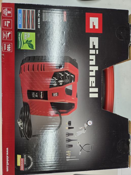 Prodajem prijenosni kompresor einhell tc-ac 180, sve radi uredno, original oprema i kutija. Ovo je bezuljni model tako da nema potrebe za odrzavanjem.