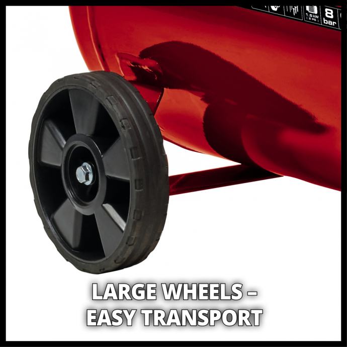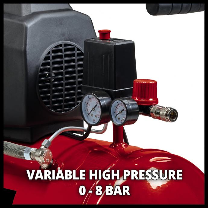 Kompresor TC-AC 190/50/8 višenamjenski je element osnovne opreme bez kojeg ne smije biti nijedna garaža ili radionica. Kompresori pružaju pristup širokom spektru alata. Ovaj model kompresora proizvodi snagu od 1500 W, što vam omogućuje izvođenje brojnih primjena do maksimalnog tlaka od 8 bara koji se može podesiti pomoću regulatora tlaka. Spremnik od 50 litara pruža iznimnu količinu rezervnog zraka za fleksibilnost posla. Podmazivanje uljem osigurava dugi životni vijek kompresora. Za dodatnu sigurnost u upotrebi postoji nepovratni i sigurnosni ventil. Ostale značajke uključuju manometar i spojku za brzo otpuštanje za regulirani radni tlak, kao i veliki manometar za neregulirani tlak u spremniku. Za laku mobilnost kompresor ima gumirane kotače i transportnu ručku. Buka tijekom uporabe smanjuje se gumiranim nosačem.