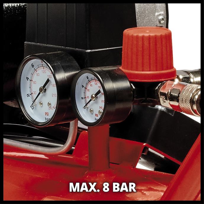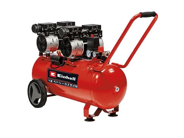 Einhell kompresor TE-AC 50 Silent višenamjenski je kompresor s niskom razinom buke od 54dB (LpA) i snagom od 1500 wata. Kompresor je znatno tiši od konvencionalnih kompresora s istim učinkom. Kompresor se može koristiti u radionici, garaži, za renoviranje, s odgovarajućim alatom možete u kratkom roku nanijeti lakove i boje, koristiti ulja za impregniranje velikih površina ili ciljano drvo. Radovi na ispuhivanju ili pjeskarenju također se mogu obaviti u radionici. Kompresor pokreće pumpa bez ulja. Spremnik od 50 litara nudi dovoljne rezerve zraka za veće zahtjeve. Primjene se mogu regulirati do maksimalnog tlaka od 8 bara pomoću regulatora tlaka. Kompresor je jednostavan za održavanje. Dostupni su manometar i brza spojka za regulirani radni tlak i neregulirani tlak u spremniku. Sigurnosni ventil nudi visoku sigurnost korisnika. Veliki kotači i transportni nosač olakšavaju transport. Noge koje prigušuju vibracije osiguravaju čvrsto i sigurno uporište tijekom korištenja. Einhell je uvjeren u kvalitetu i daje 10-godišnje jamstvo protiv hrđe spremnika.