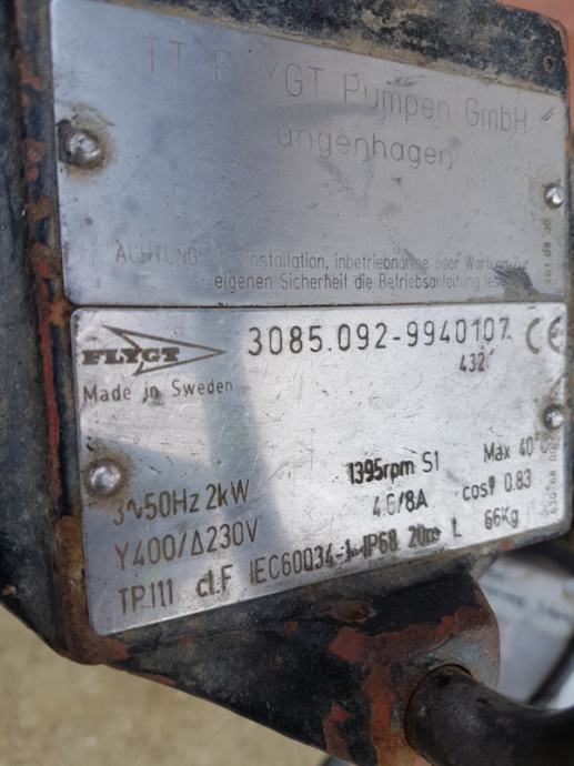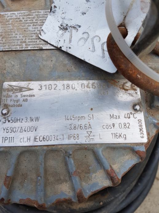 Električna pumpa za ispumpavanje typ FLYGT kapacitet 400 l/min