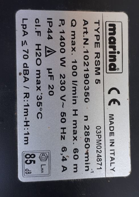 Pumpa za vodu Speroni tip Marina RSM 5 (Italija)