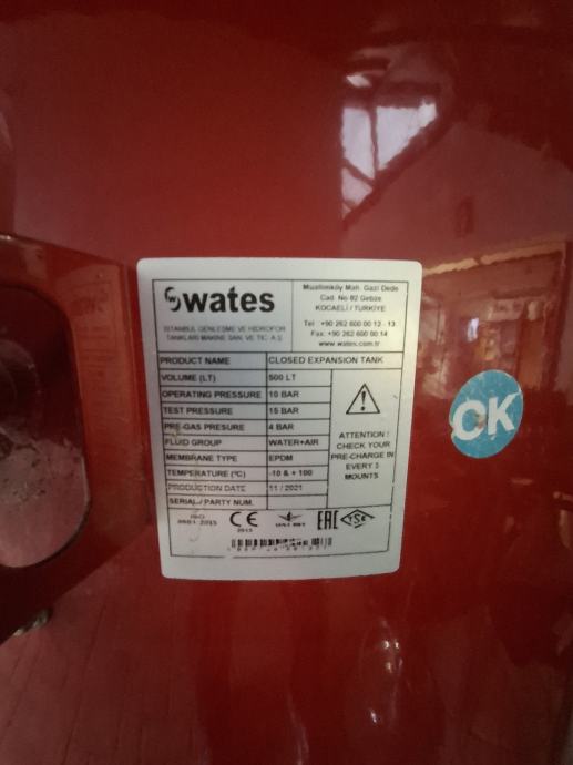 Hidroforska ekspanzijska posuda za vodu od 500l
