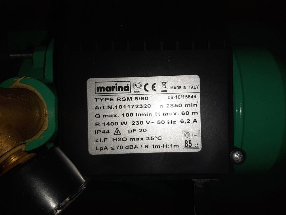 Prodajem novi zapakirani hidropak Marina RSM 5/60, snage 1,4 kW, 220 V, tlačni spremnik 60 lit, max. usisna visina 8 m, visina pumpanja 60 m.