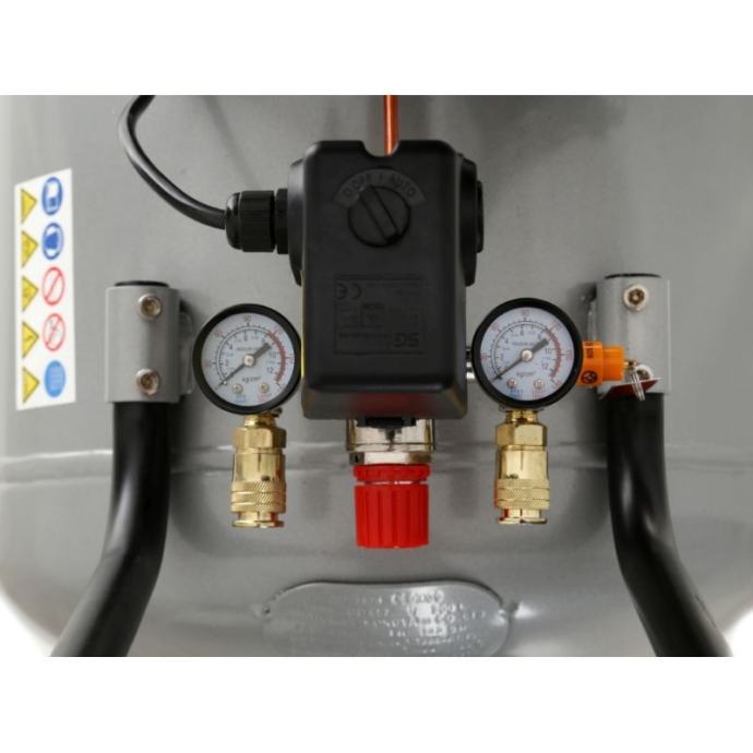 ergonomski - ima redukcijski ventil opremljen inovativnim mehanizmom za podešavanje donjeg i gornjeg tlaka, 2 velika metalna manometra smještena na kompresoru u položaju koji olakšava očitavanje parametara i odvodni ventil koji je jednostavan za rukovanje
