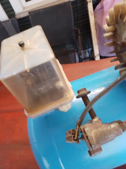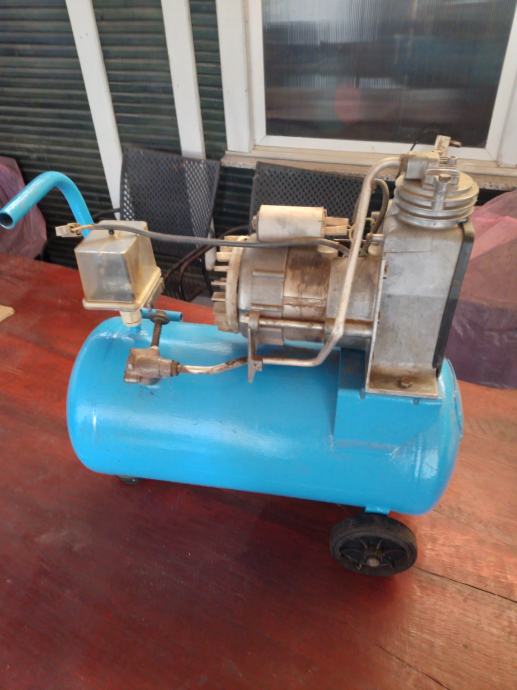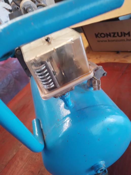Kompresor 24 litre , ima i neku zaštitnu sklopku na kojoj piše da se podešava od 0,7 do 10 bara , sam motor odlično pumpa zrak i ima neki i regulator ali to sve treba neki znalac posložiti , .... i zato sve za samo 90 E !!!