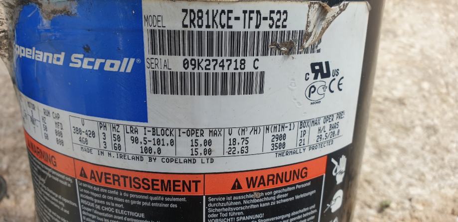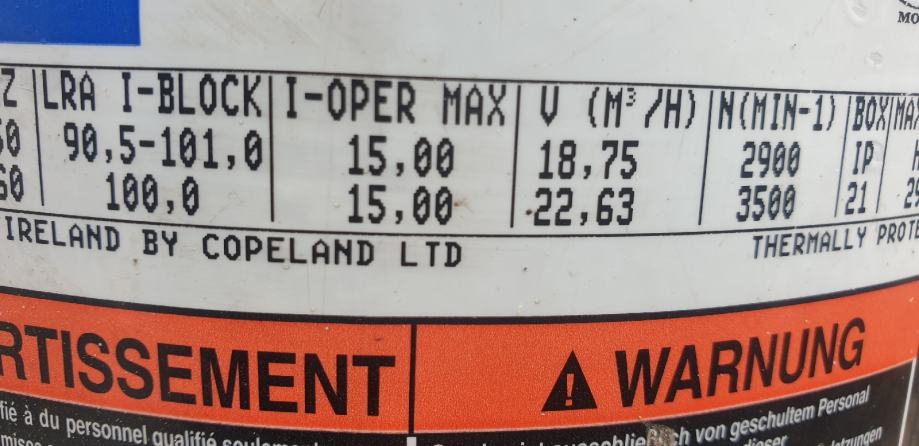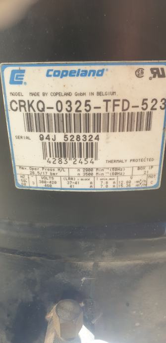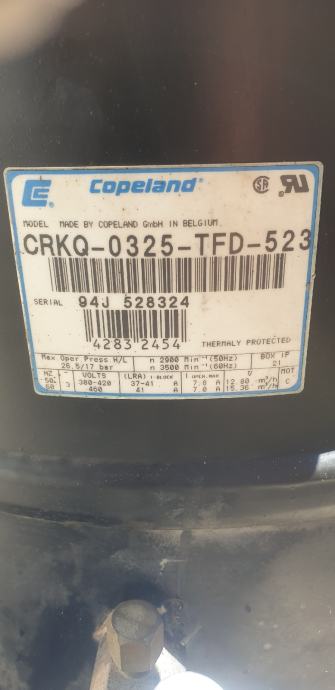 Kompresor copeland klipni do 18,5m3/h(scroll) 14m3/h 12m3/h podaci vidljivi na slikama sintetičko ulje može na sve rashladne medije (R22,R404,R407,R410...)