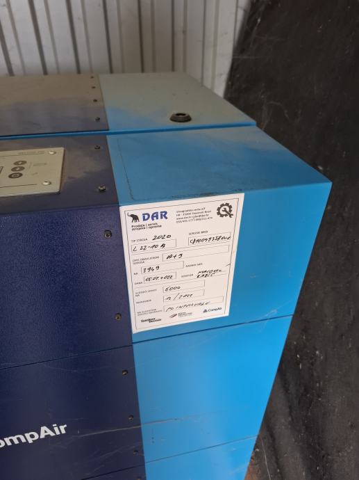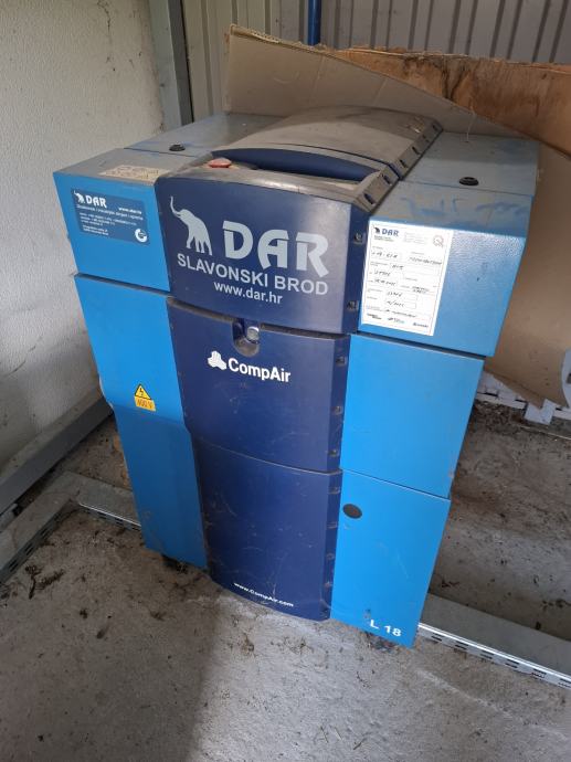 Prodaje se: KOMPRESOR VIJČANI STAC. CompAir tip L-22-10A V2, KOMPRESOR VIJČANI EL. tip L 18-7,5, b, V2, SPREMNIK 1.000 L, 11,5 bara- vertikalni bojani, SUŠAČ rashladni drytec Tip SDE-380.